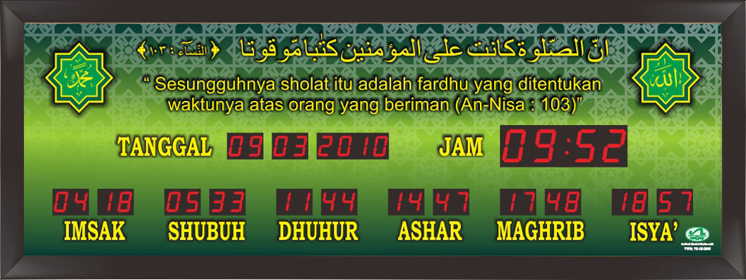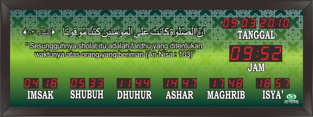 Jadwal Sholat Digital Otomatis Ukuran Besar QH Frame Minimalis