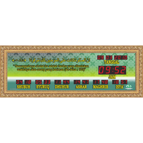 Jam Dinding Jadwal Sholat Ukuran Sdang QH Frame Emas