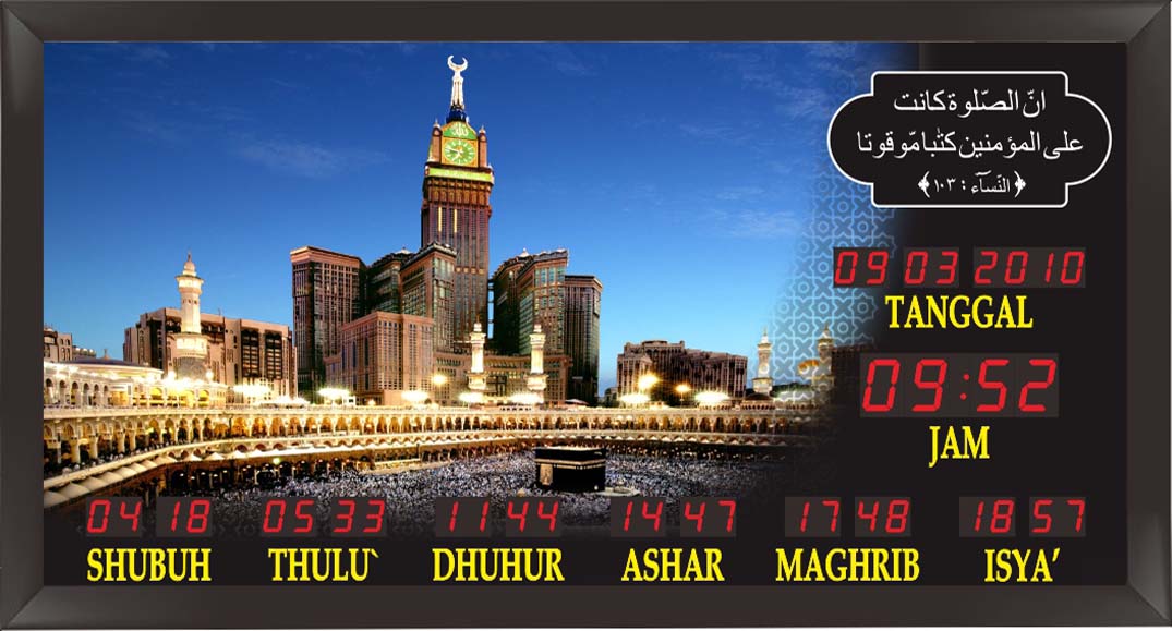 Jam Waktu Sholat Otomatis Ukuran Besar QKB / QKC Frame Minimalis