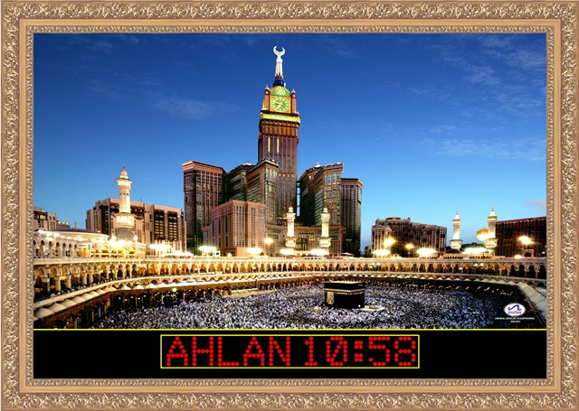 13. Background MASJID MAKKAH CLOCK TOWER Backlight. Nyala otomatis tiap masuk waktu maghrib sampai shubuh.