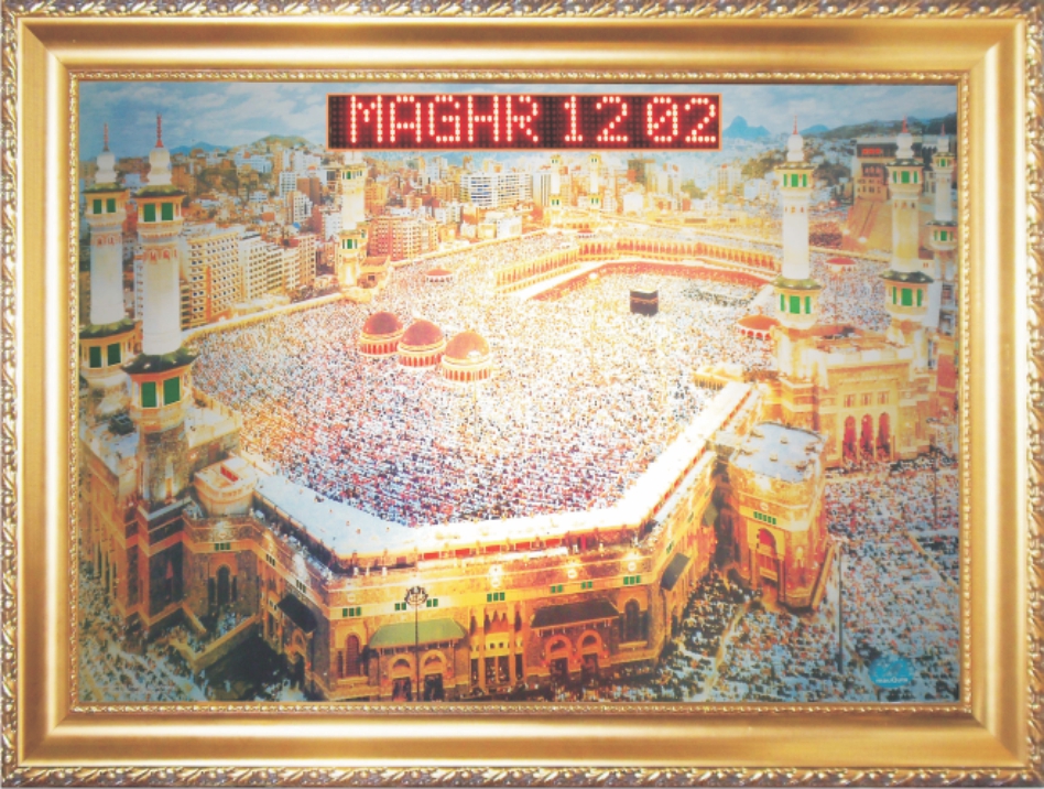 13. Background MASJIDIL HARAM Backlight. Nyala otomatis tiap masuk waktu maghrib sampai shubuh.
