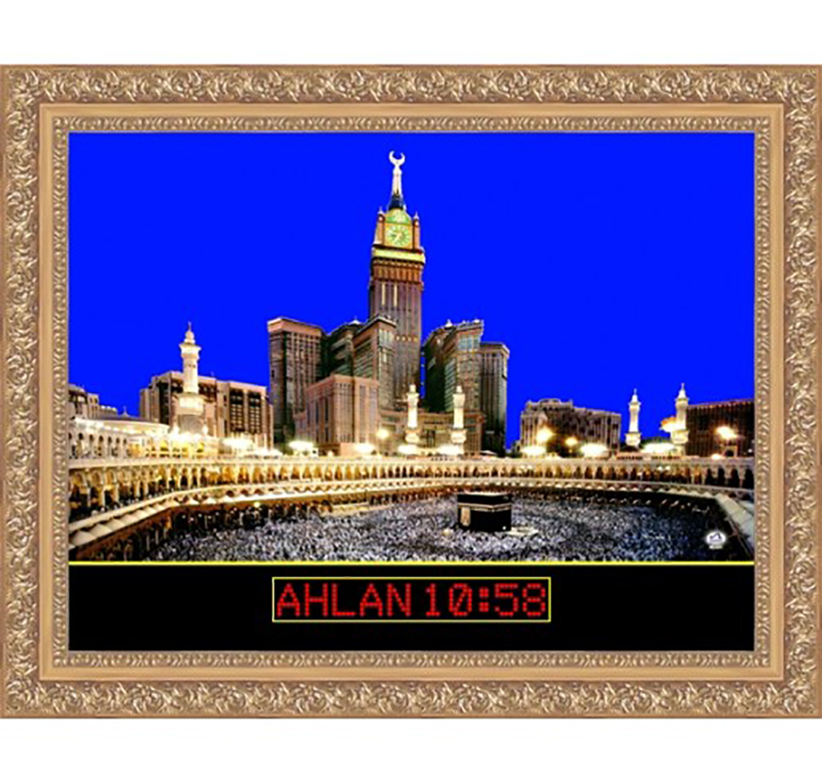 13. Background MAKKAH CLOCK TOWER Backlight. Nyala otomatis tiap masuk waktu maghrib sampai shubuh.