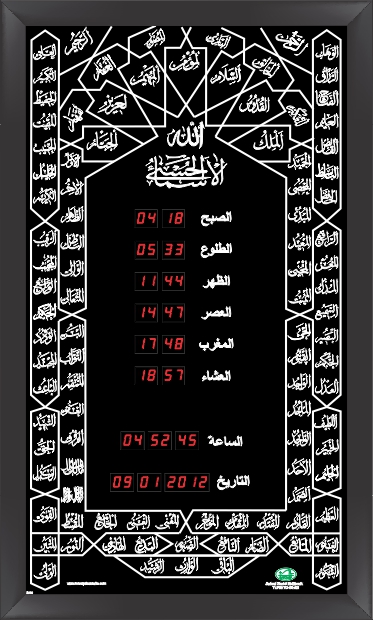 Produk TQ-05-AH ini memiliki Jadwal Waktu Sholat Otomatis yang berlaku selama 100 tahun. ADZAN berkumandang tiap awal waktu sholat fardhu, serta tersedia 255 jadwal waktu sholat untuk kabupaten/kota di Indonesia dan Asia Tenggara, bisa input koordinat untuk kabupaten/kota yang belum masuk dalam daftar kota