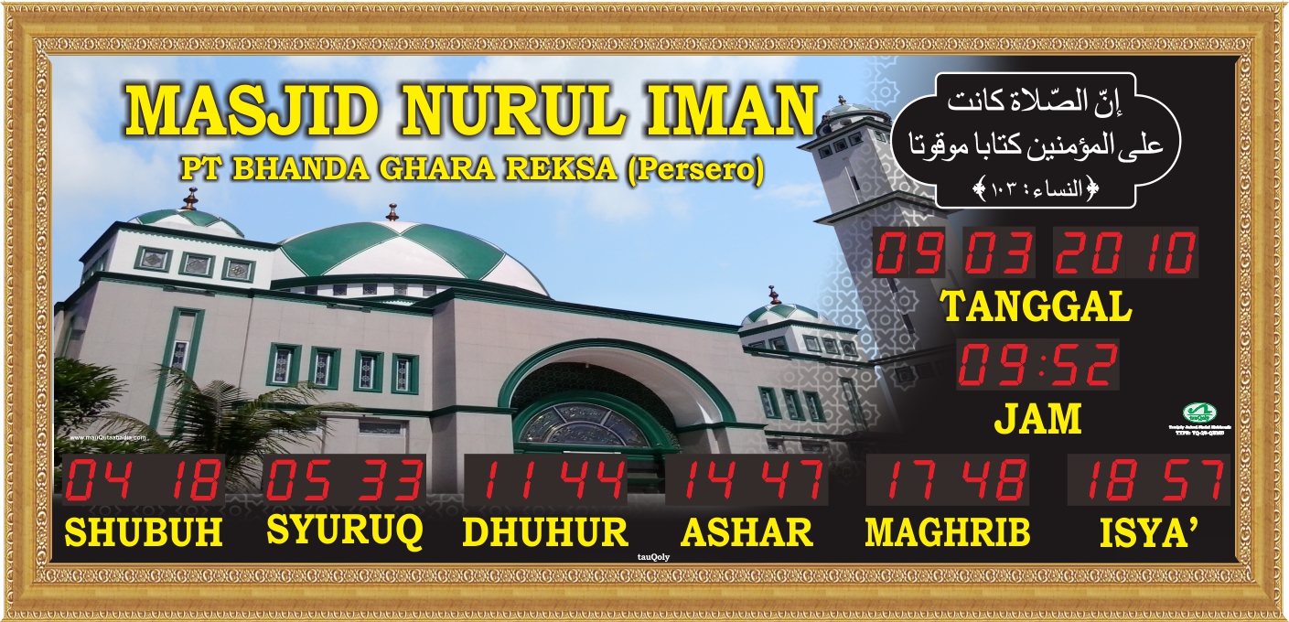 Produk TQ-23-QFK ini memiliki Jadwal Waktu Sholat Otomatis yang berlaku 100 tahun dimana tiap awal waktu sholat fardhu akan bersuara BEEP dan mempunyai fitur jeda Iqamah. Tersedia 255 jadwal waktu sholat untuk kabupaten/kota di Indonesia dan Asia Tenggara, bisa input koordinat untuk kabupaten/kota yang belum masuk dalam daftar kota