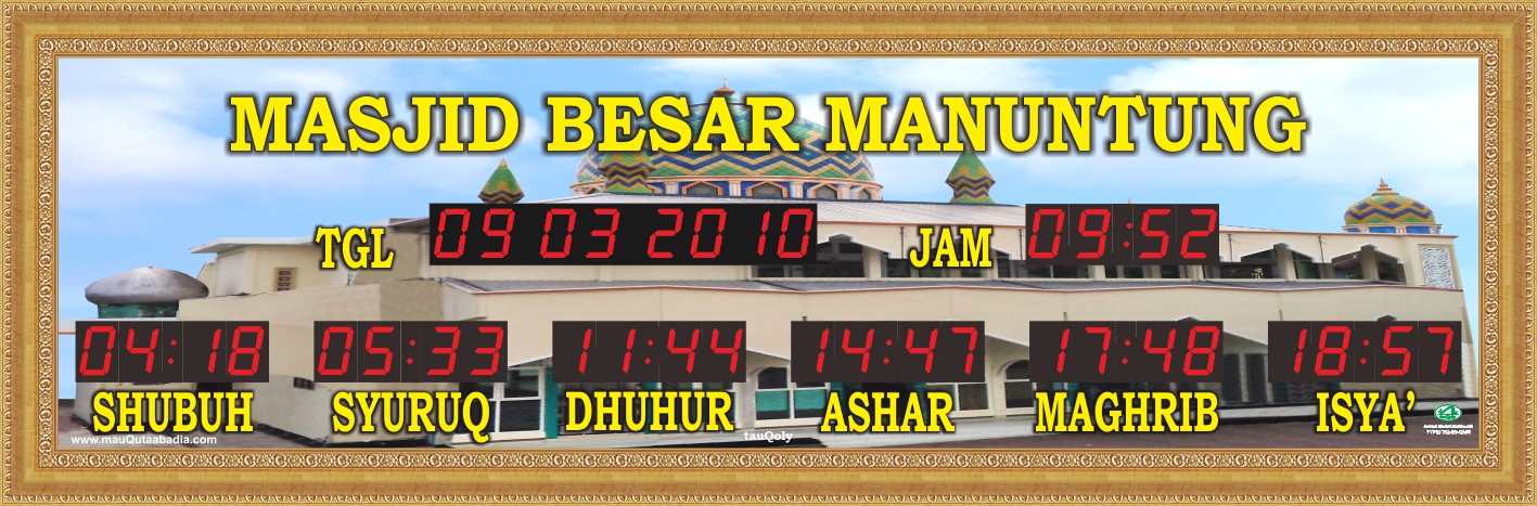 Produk TQ-23-QK ini memiliki Jadwal Waktu Sholat Otomatis yang berlaku 100 tahun dimana tiap awal waktu sholat fardhu akan bersuara BEEP dan mempunyai fitur jeda Iqamah. Tersedia 255 jadwal waktu sholat untuk kabupaten/kota di Indonesia dan Asia Tenggara, bisa input koordinat untuk kabupaten/kota yang belum masuk dalam daftar kota