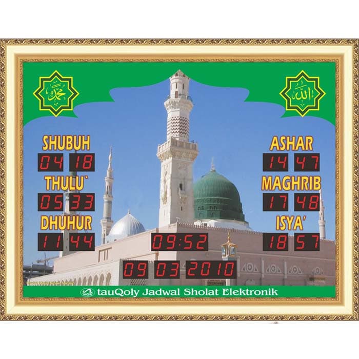 Produk TQ-23-QRD ini memiliki Jadwal Waktu Sholat Otomatis yang berlaku 100 tahun dimana tiap awal waktu sholat fardhu akan bersuara BEEP dan mempunyai fitur jeda Iqamah. Tersedia 255 jadwal waktu sholat untuk kabupaten/kota di Indonesia dan Asia Tenggara, bisa input koordinat untuk kabupaten/kota yang belum masuk dalam daftar kota