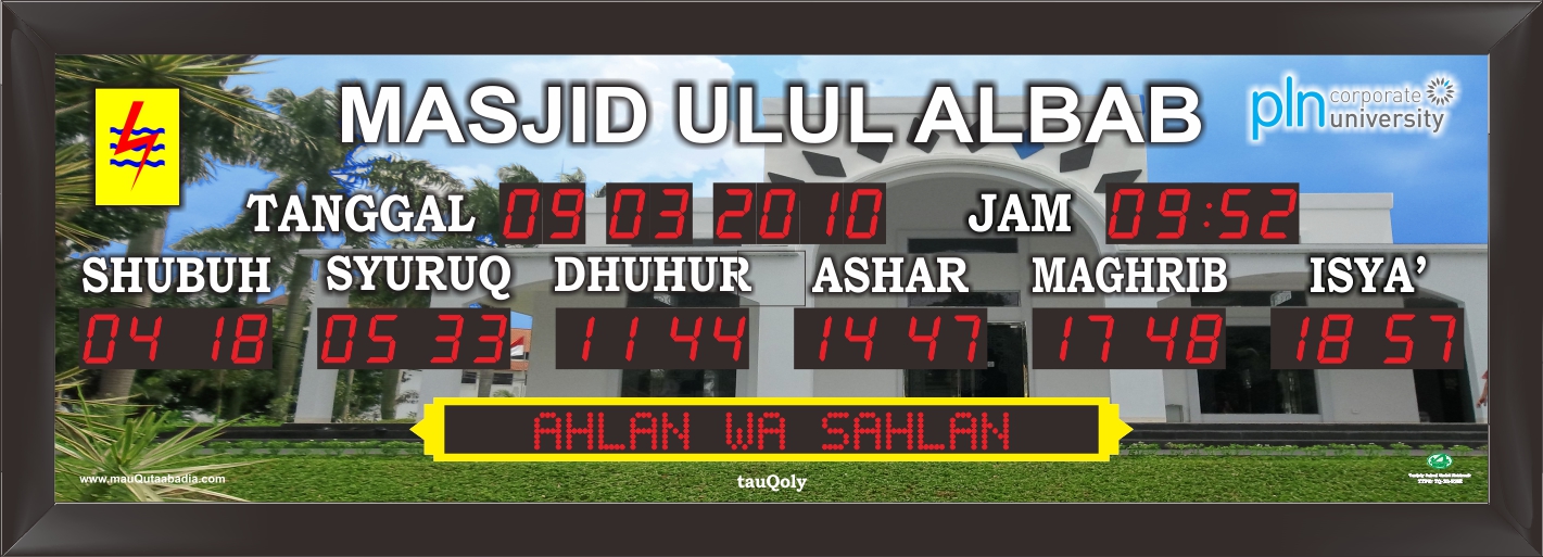 Produk TQ-23-RK ini memiliki Jadwal Waktu Sholat Otomatis yang berlaku 100 tahun dimana tiap awal waktu sholat fardhu akan bersuara BEEP dan mempunyai fitur jeda Iqamah dan fitur running text yang bisa diedit. Tersedia 255 jadwal waktu sholat untuk kabupaten/kota di Indonesia dan Asia Tenggara, bisa input koordinat untuk kabupaten/kota yang belum masuk dalam daftar kota