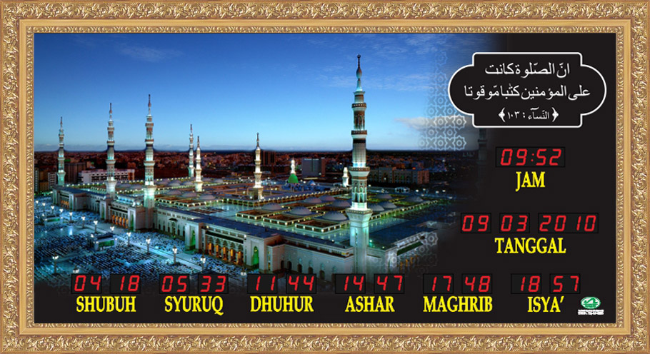 Waktu Sholat Digital Abadi Ukuran Sedang SMK / SMD Frame Emas