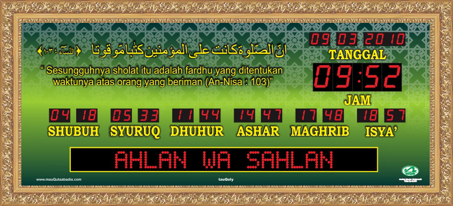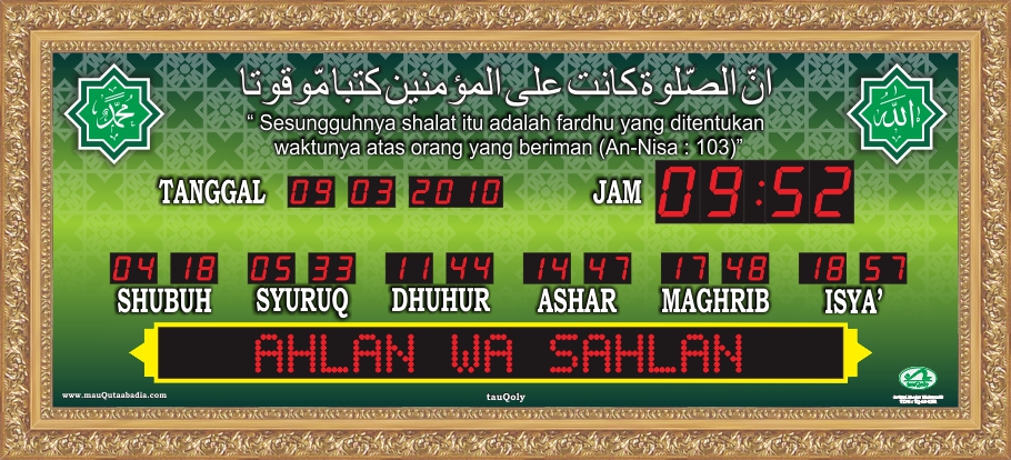 Waktu Sholat Digital Otomatis Ukuran Sedang RH Frame Emas